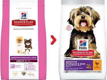 Hill’s Science Plan Adult 1 Sensitive Stomach & Skin Small/Mini Dog Food with Chicken provides optimal digestive health while nourishing skin & promoting a lustrous coat.