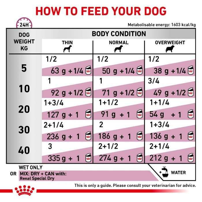Attracting your dog to their food bowl can be challenging in cases of food aversion, so to cater to each dog’s individual preferences, Royal Canin Renal Special Wet Dog Food (in Loaf) is also available as dry food. Texture variety can help to stimulate your dog’s appetite and account for any fluctuations in their preferences. If your dog enjoys a mixed diet of wet and dry food, be sure to reference the on-pack feeding guides to ensure a healthy daily food intake for your dog.